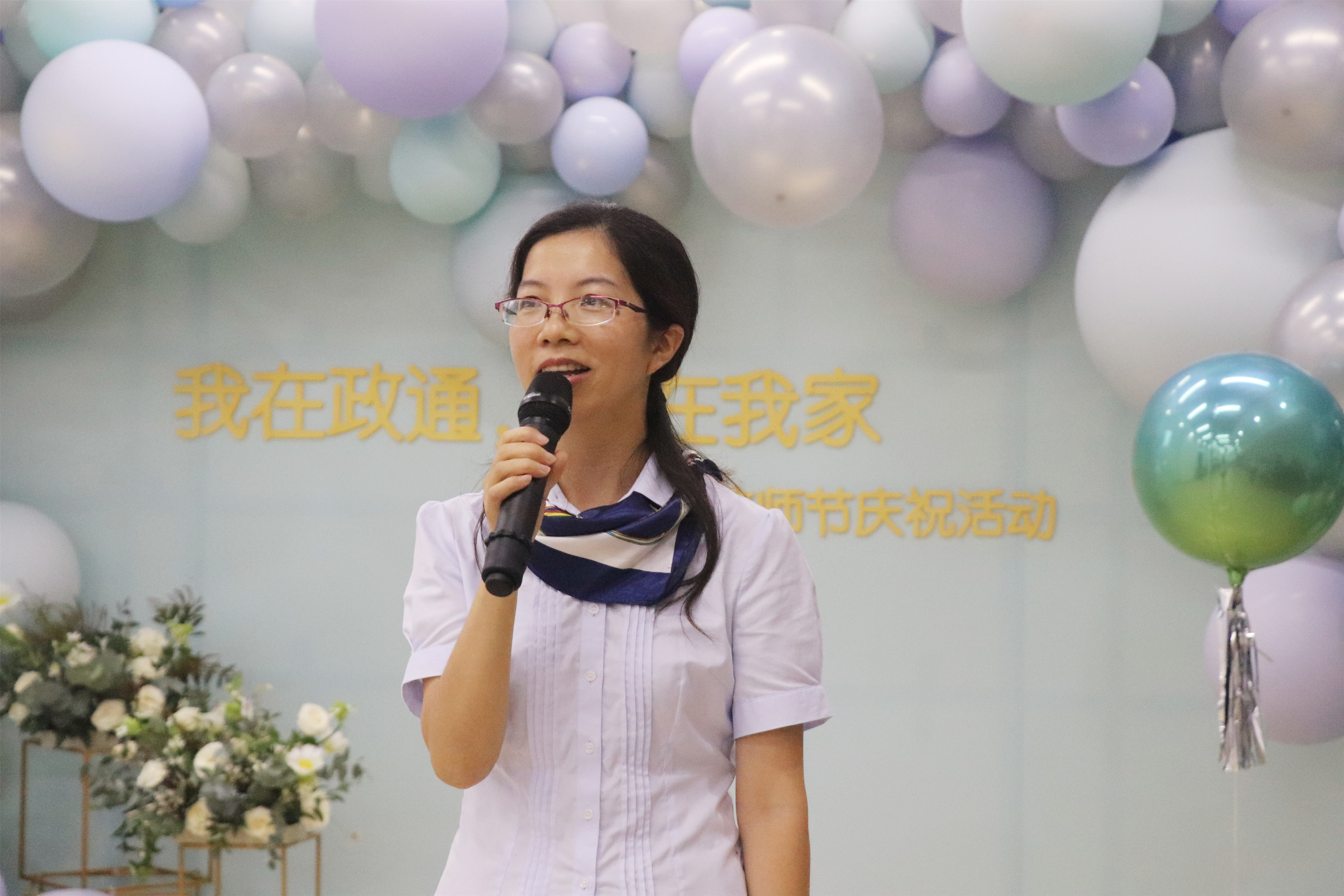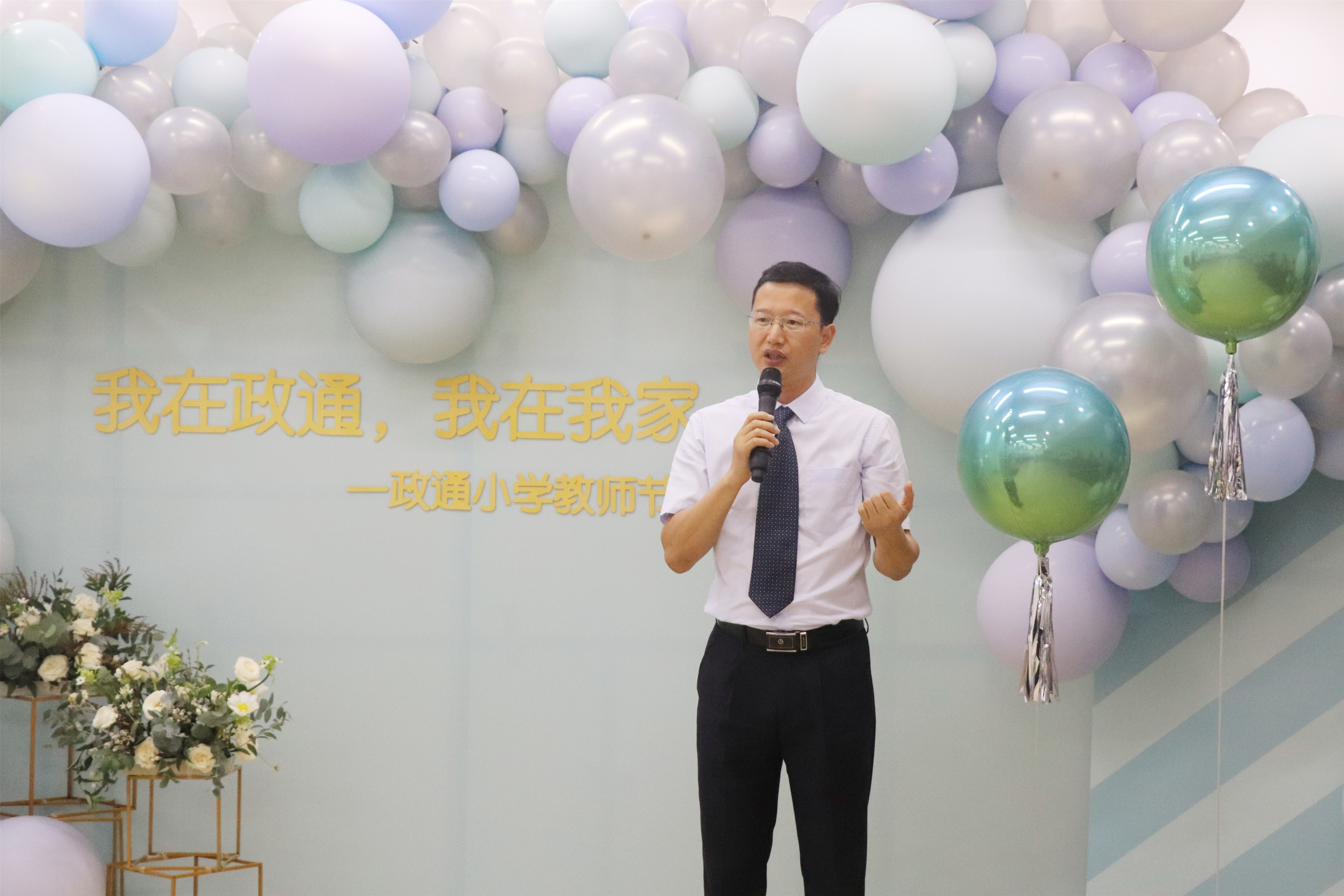紧接着,黄金强校长在讲话中不仅向新加入政通大家庭的37位老师,表示热烈的欢迎,还向全体教师表达了最亲切的节日问候;同时还鼓励大家既要教书育人,也要学会雅致生活;要有“累并快乐着”的执着,更要有“一颗丹心照天地,两鬓白发映乾坤”的胸怀。