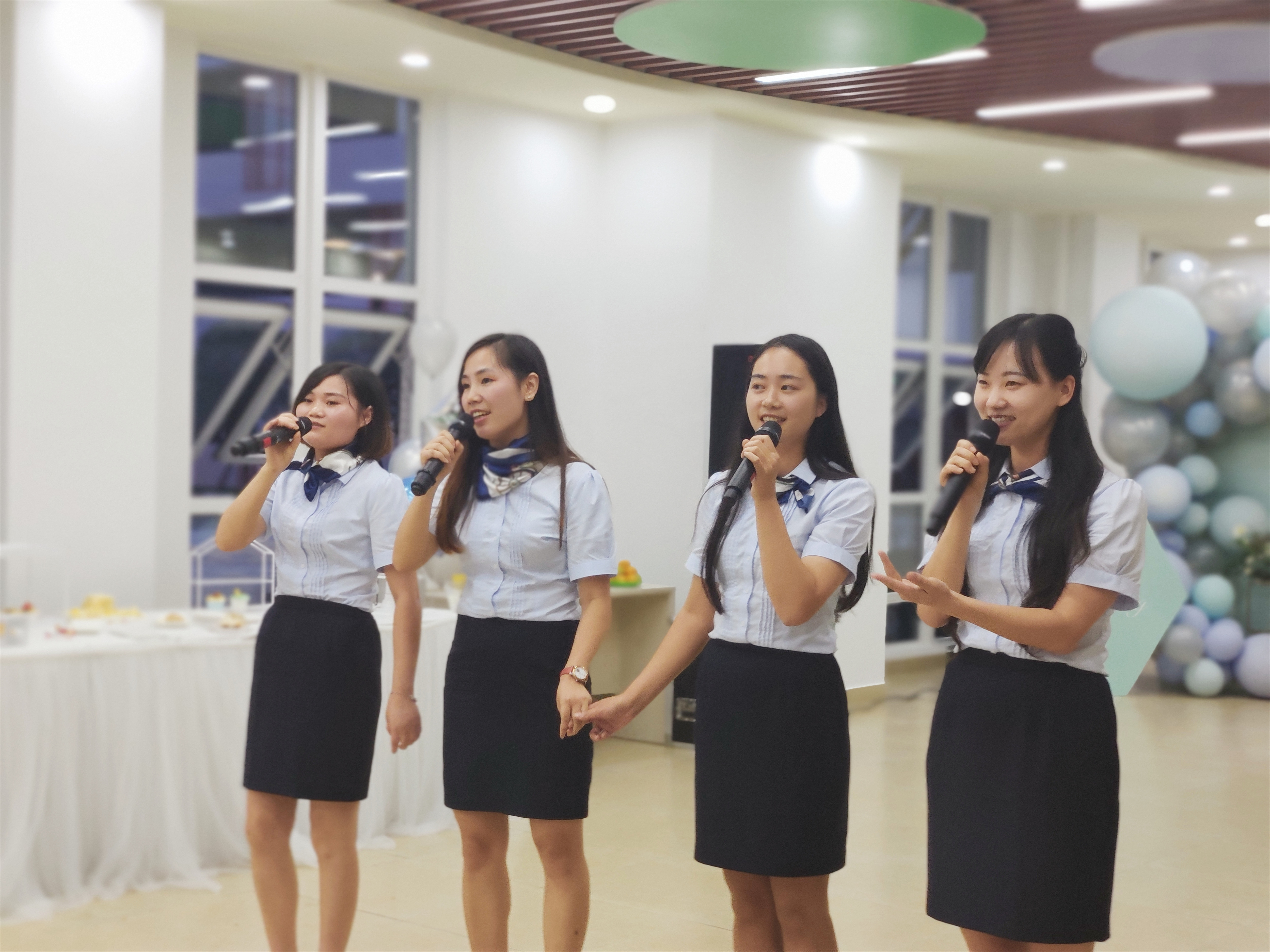 接下来,精彩的才艺展示开始了!由音乐组陈雪杨、王萍萍、邹琦、闫岩四位老师演唱的《风吹麦浪》,悠扬婉转、款款深情;叶玉莹、叶玉涵两位美术老师演唱的《追光者》声情并茂、鼓舞人心;由戴天琪、罗敏驰、巨晨曦、宋直言四位老师演唱的《朋友》道出政通人和,团结一心的情怀;还有钟尧林、孙佳婕、张英杰、叶蕾四位老师演唱的《水调歌头.明月几时有》,给大家提前送来了中秋的祝福。老师们的精彩演唱,博得了现场同事们的阵阵掌声,他们的演唱,也是我们这一群政通人思想凝聚的精神之歌!