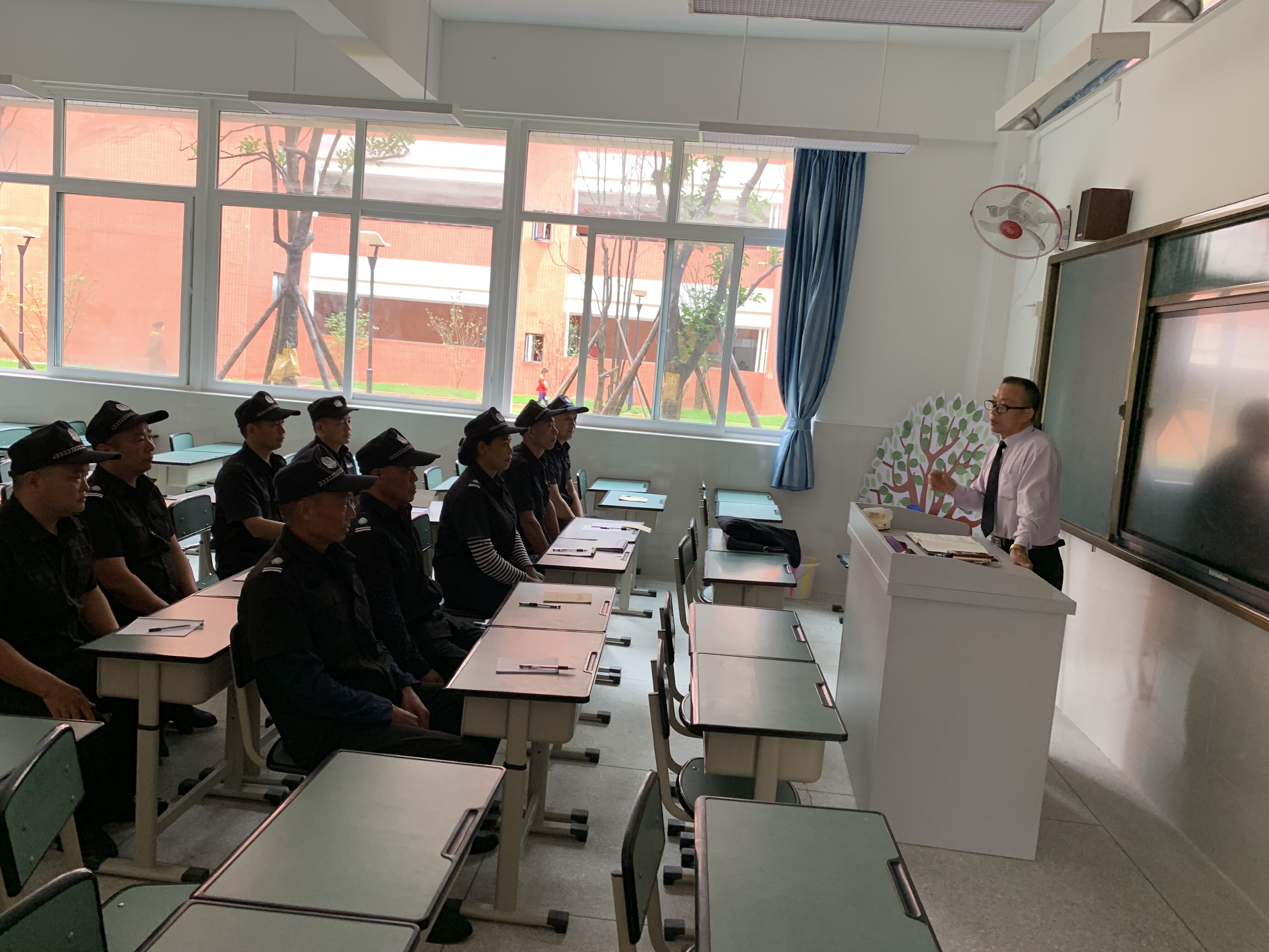 为进一步加强我校安保工作,规范校园保安门卫管理,有效提升校园保安在校园防恐处突、应急事件处置工作的综合能力,2019年9月14日,政通小学联合保安公司举行了校园保安技能培训,特别邀请专职教官进行培训,培训的主要内容包括接待礼仪、工作职责及防暴安全技能等。