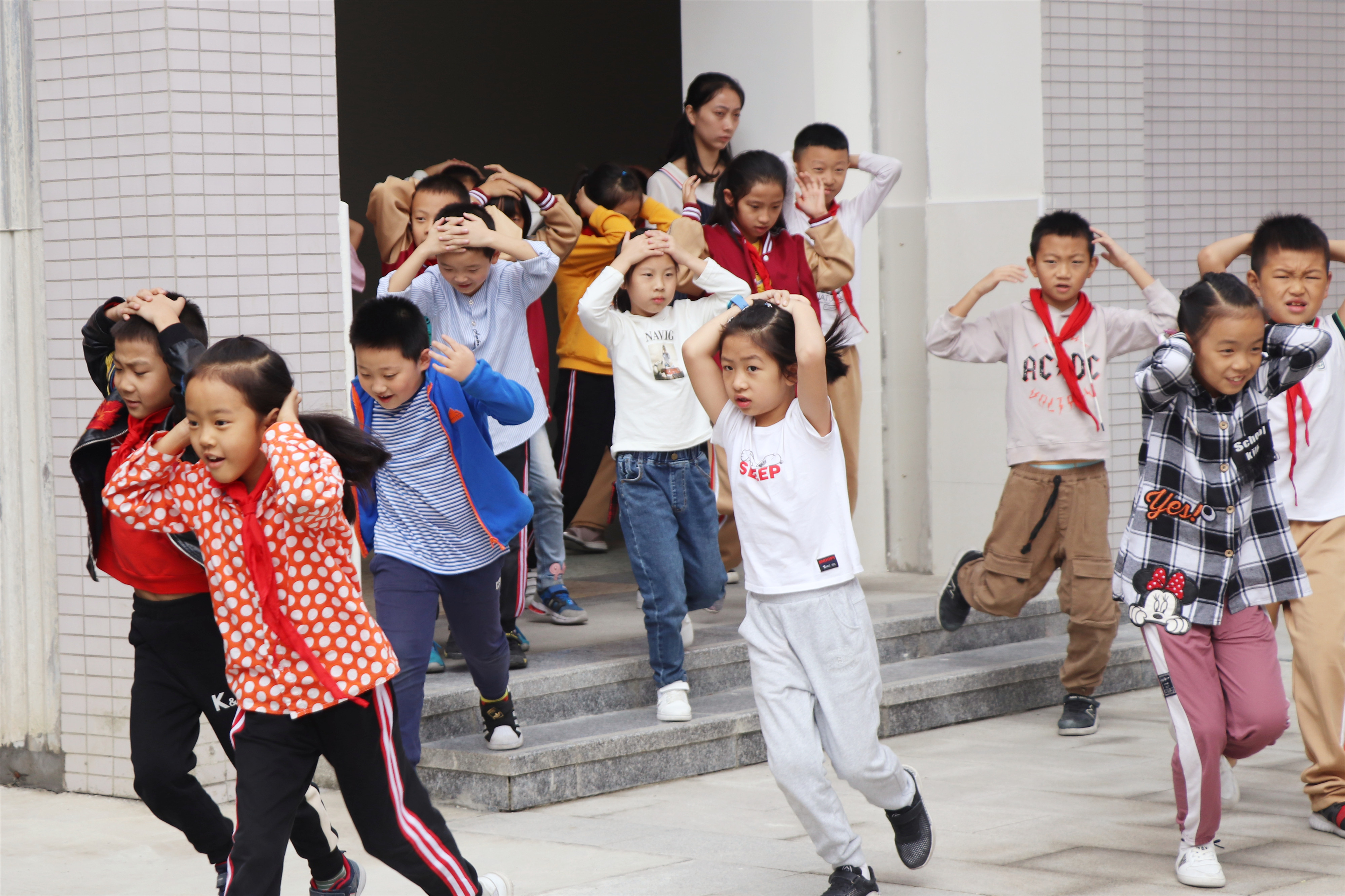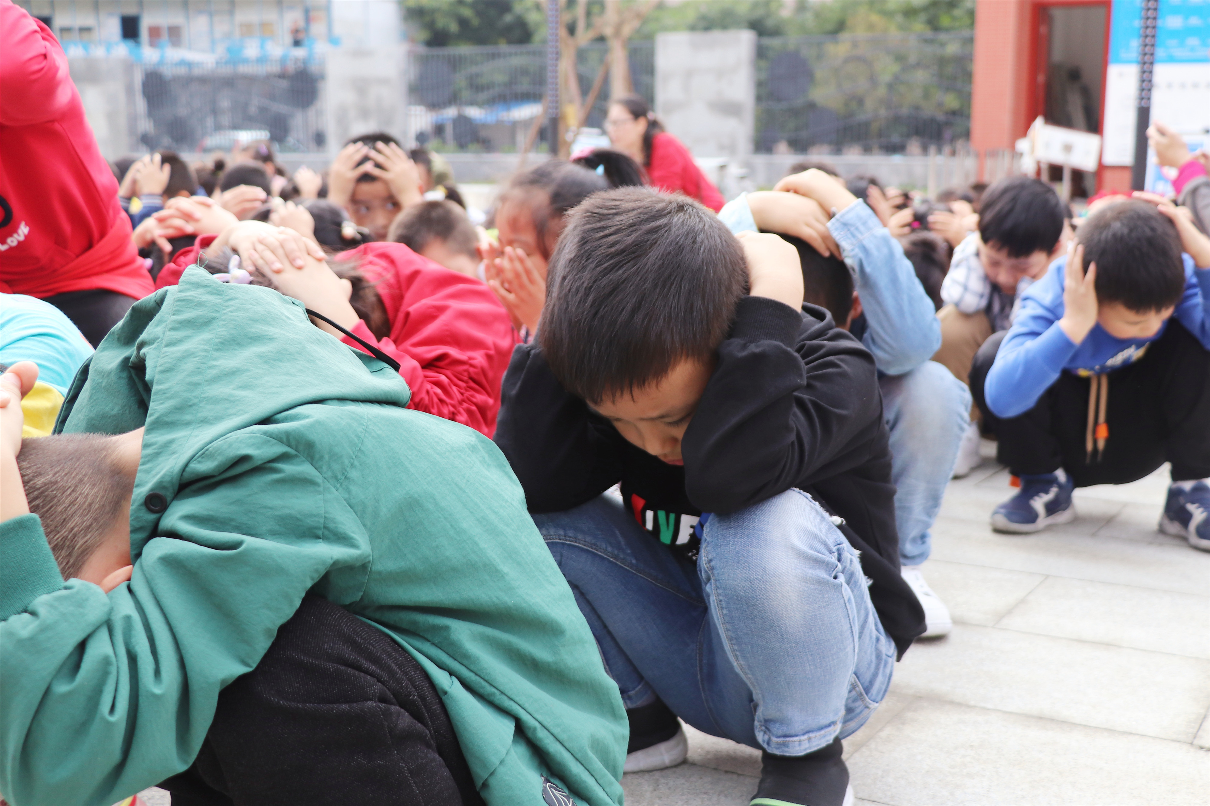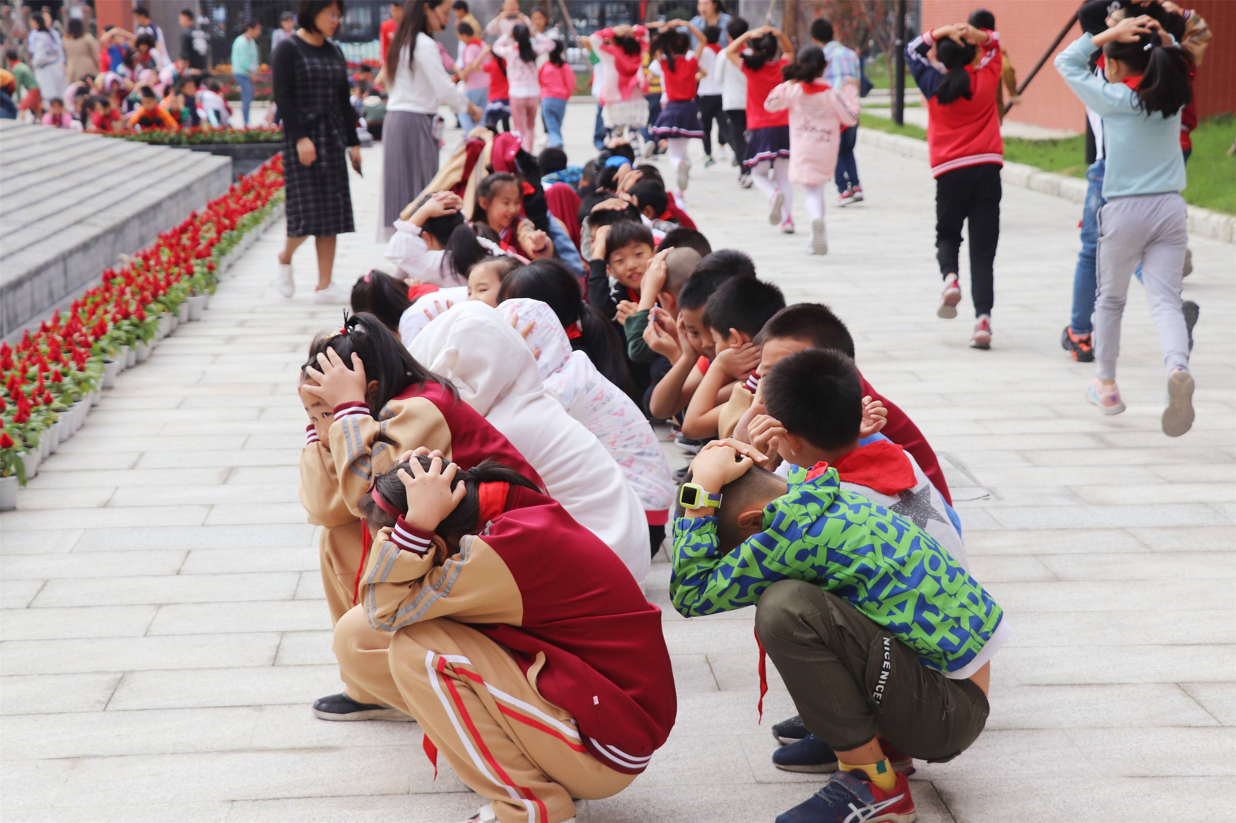上午10:00,第一声高亢的警报在校园响起,低楼层师生迅速从教室撤离,双手抱头跑向空旷处;三楼的学生原地抱头躲在课桌下,第二声警报拉响,三楼全体师生双手抱头飞快到达空旷处。10:10全校师生安全达到学校前操场。