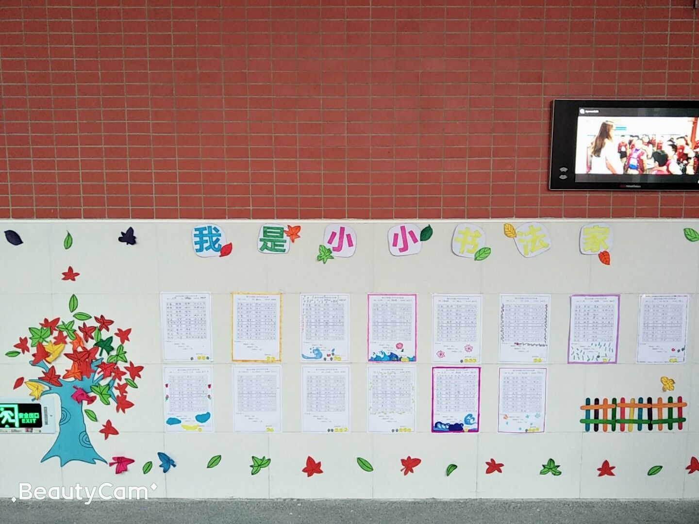 谜底终于揭晓了!走进展示栏的作品经过重重考验,不仅要把词语写正确,还要书写漂亮哦!看看这一副幅作品,哇!还有五个小粘贴的,我要向他学习!