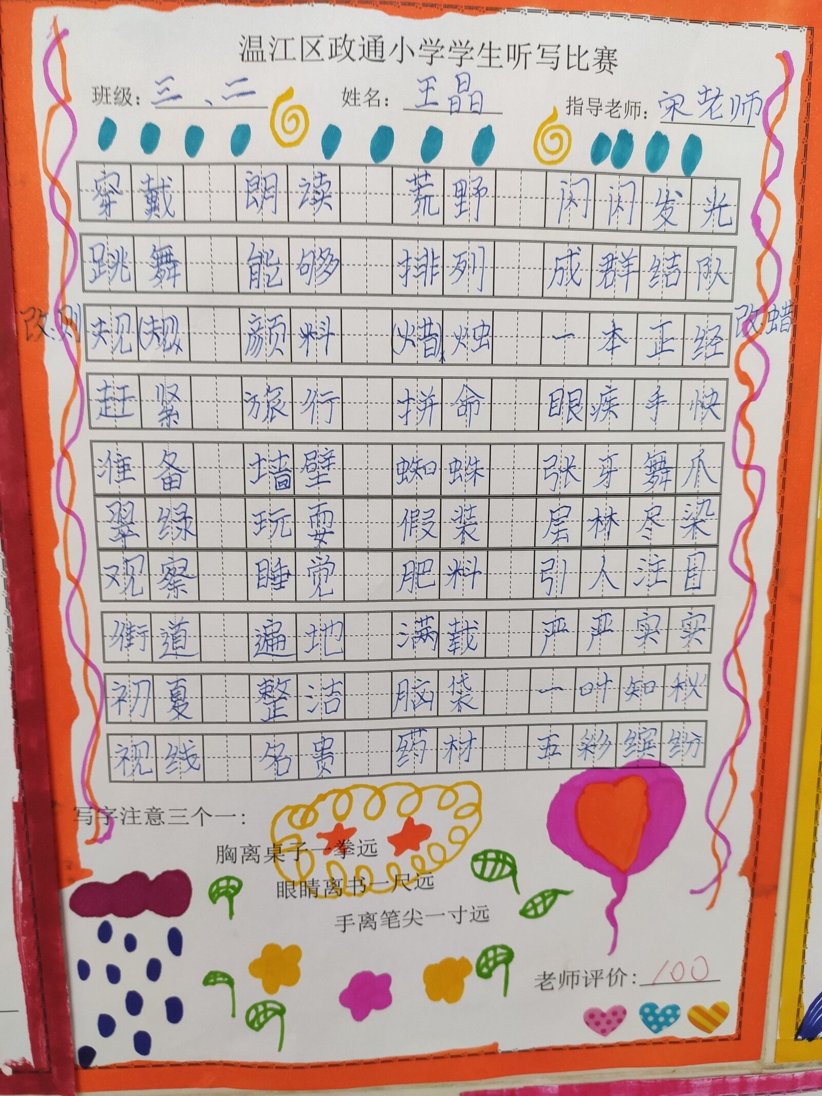 ------政通小学三年级书写暨听写比赛