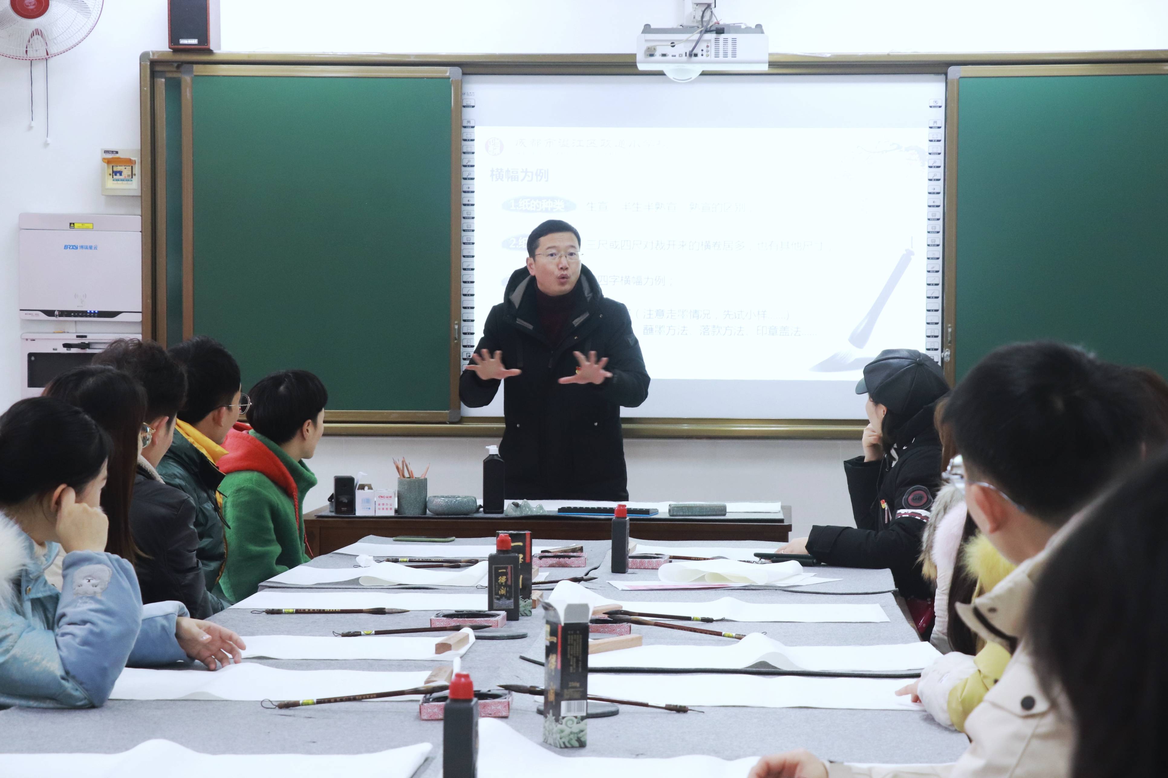 为进一步提升教师队伍文化艺术修养和文字书写水平,彰显书法艺术魅力,打造“翰墨飘香”校园,12月29日下午,政通小学校开展了第二届教师软笔书法培训,黄金强校长为教师们进行了一场题为《书法创作分享》的讲座。