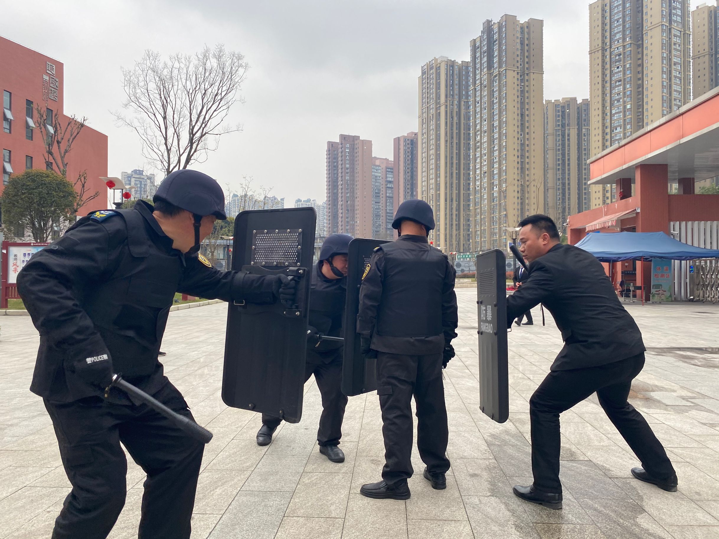 2月26日下午,政通小学校联合保安公司举行了校园保安技能培训,特别邀请专职教官对全体安保人员进行灭火器使用方法和防暴安全技能等多方面培训,进一步提升了安保队伍校园防恐处突、应急事件处置的能力。