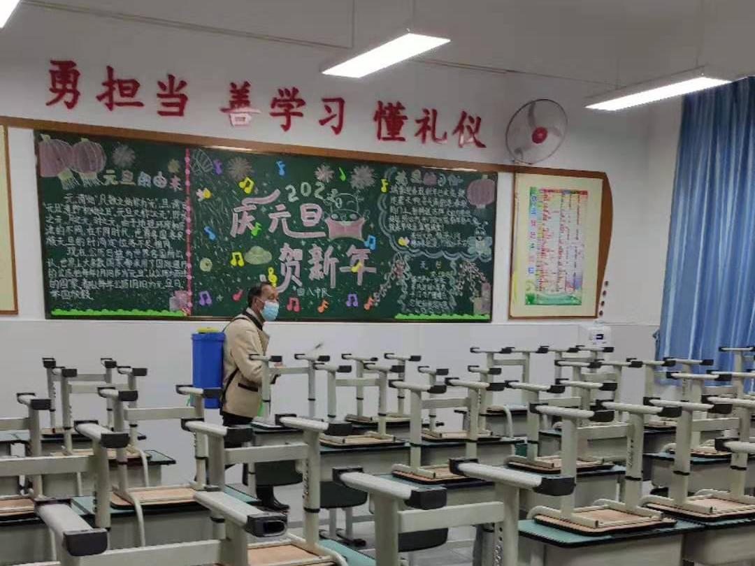 2月26日下午,保洁人员在做好校园日常公共区域消毒后,又重点对全校所有教室、厕所进行消毒和预防性通风,抑制细菌滋生,为做好春季疫情常态化防控,提供有力保障。