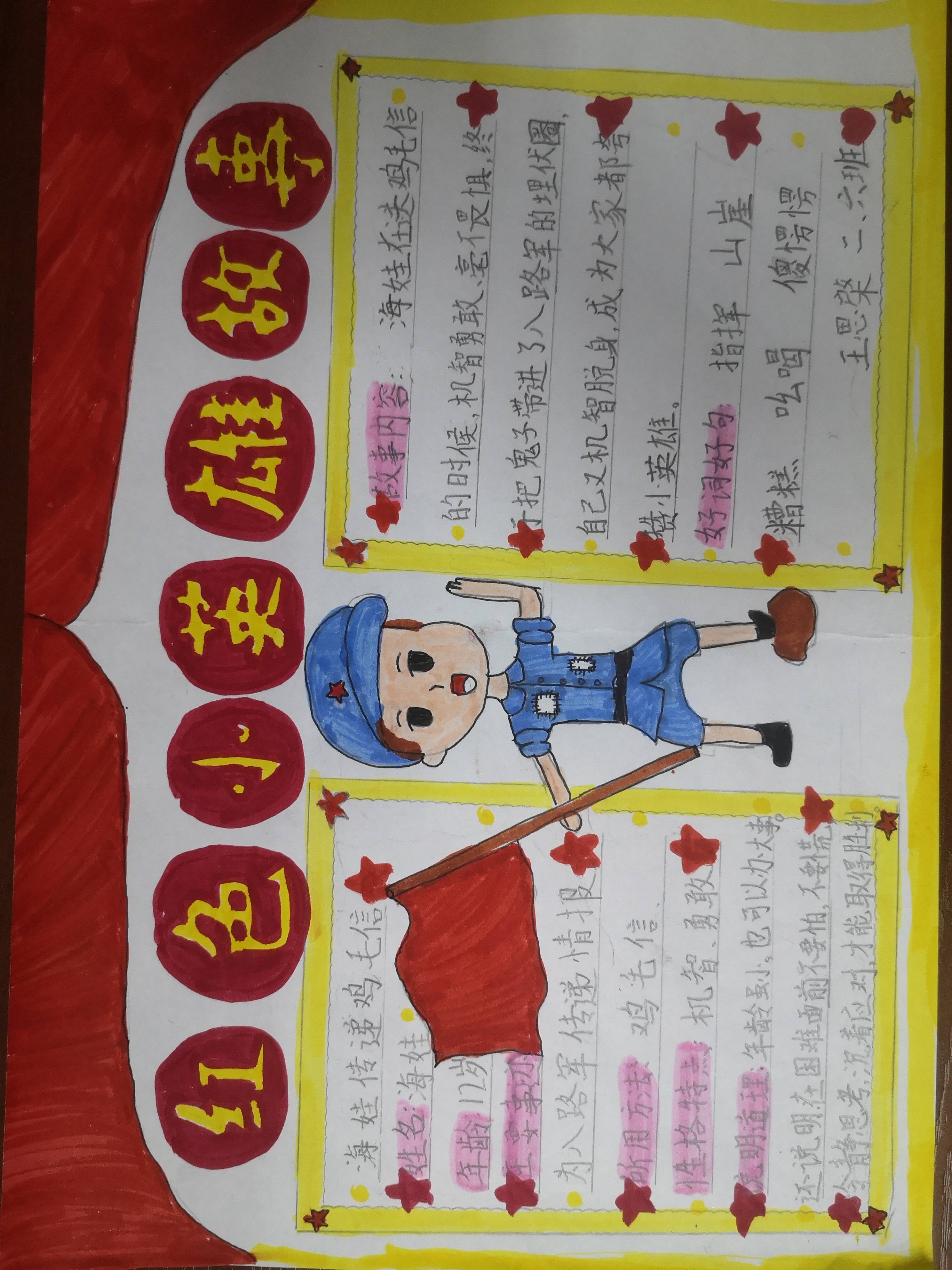 读完后,孩子们选择了自己喜爱的英雄故事,制作了精美的读书小报,并在课上和同学进行了精彩的分享,表达了对小英雄们的敬佩之情。