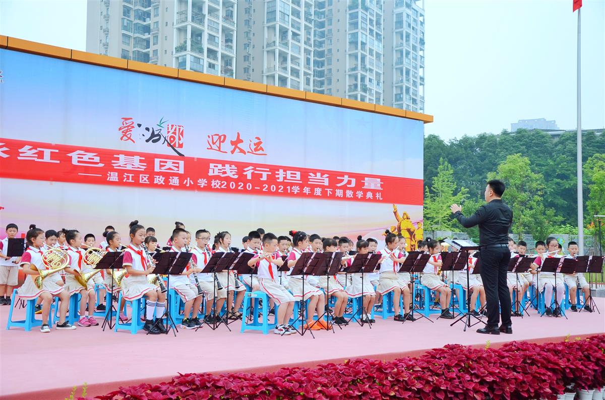 7月6日上午,政通小学举行了“传承红色基因,践行担当力量”主题散学典礼。