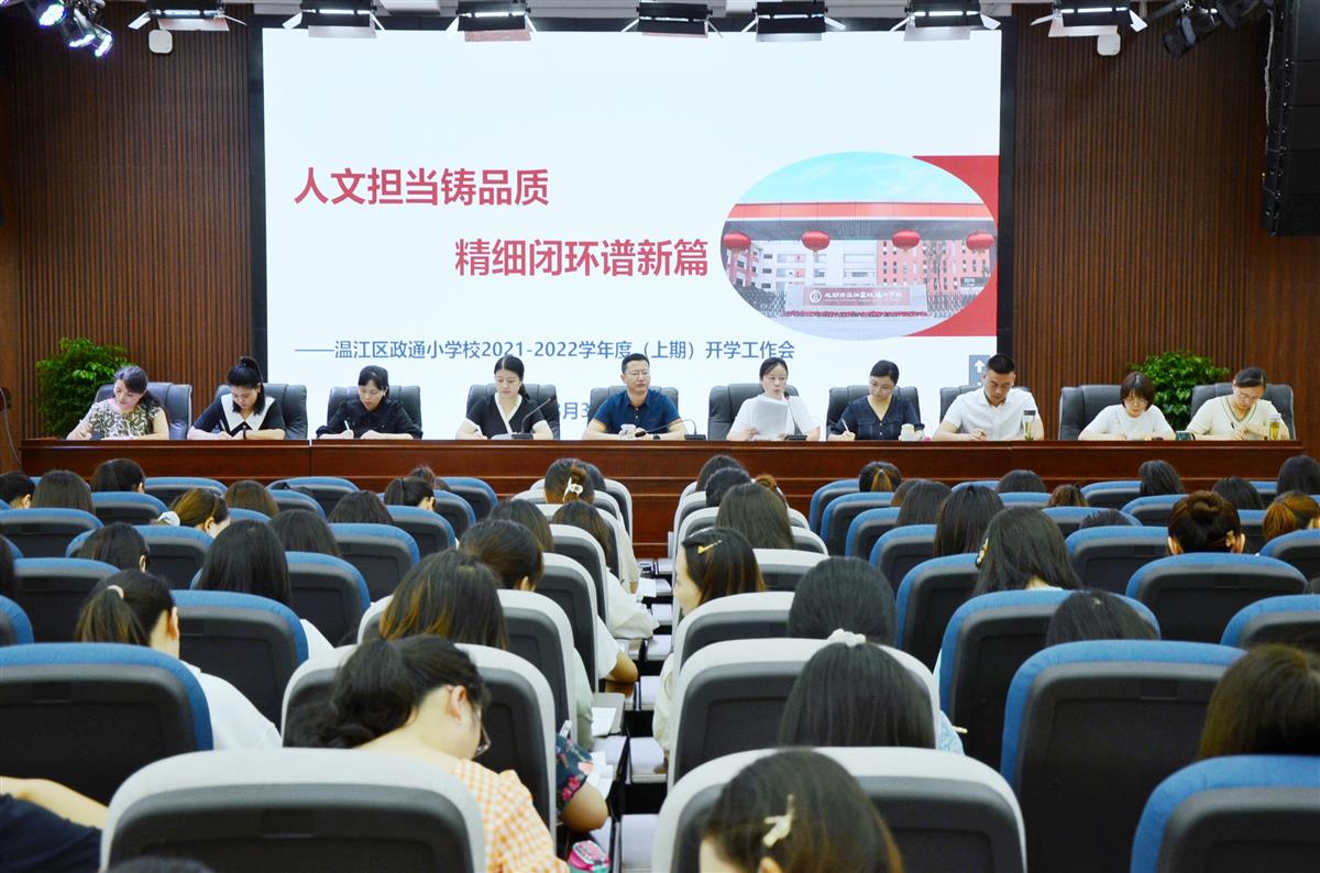 一缕夏阳随风去,几抹秋色染新枝。带着秋的喜悦,8月30日,政通小学组织全体教师齐聚一堂,召开了以“人文担当铸品质,精细闭环谱新篇”为主题的2021-2022学年度(上期)开学工作会,翻开了新学期的扉页,开启了新的希望。