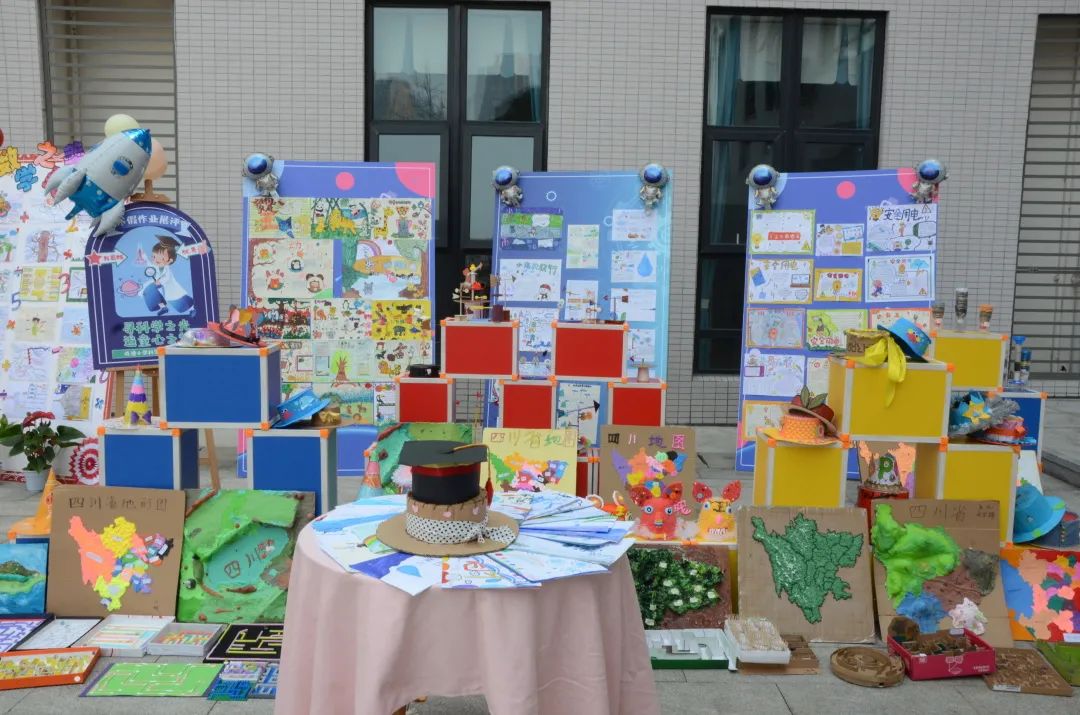 一年级制作漂亮的帽子,二年级制作的风向标,三年级制作的净水器,四年级设计制作的迷宫,都是利用身边的材料完成,每一件作品都是艺术与工程、技术的完美结合。