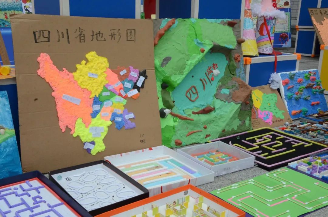 五年级是将科学、数学与工程制作相结合的难题:制作“四川地形图”,同学们查阅四川的地形数据,用橡皮泥为原料绘以不同的形式制出来一幅幅精美的四川地形图。