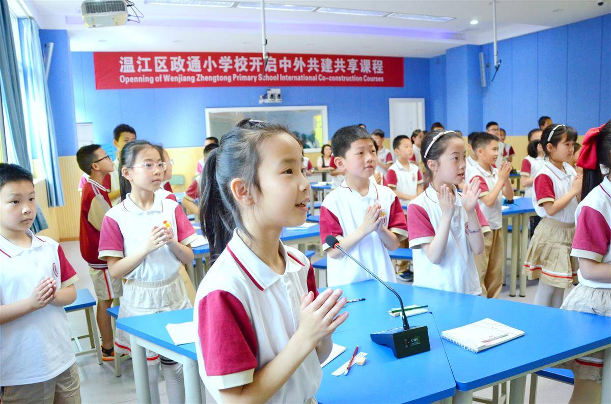为加强国际理解教育,拓宽学生的国际视野,增强学生国际文化素养,为我国培养参与全球治理的人才做好储备、打好基础,4月26日,政通小学开启了中外共建共享课程,黄金强校长、罗霞副校长、于丽副主任及教师代表全程参加。