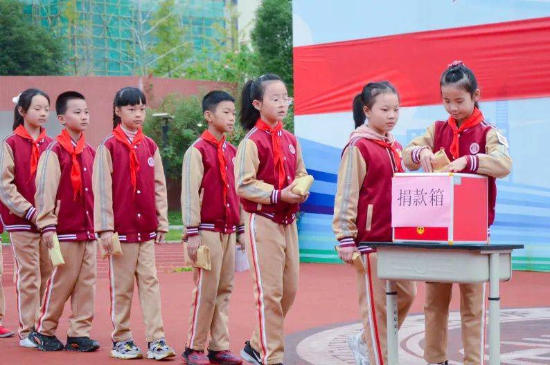 在第九周升旗仪式上,一份份爱心源源不断地放进捐款箱,政通娃们用自己的善行义举,为受助者燃起生命希望。此次活动所得善款学校将捐献至区慈善会,让爱继续传递下去。