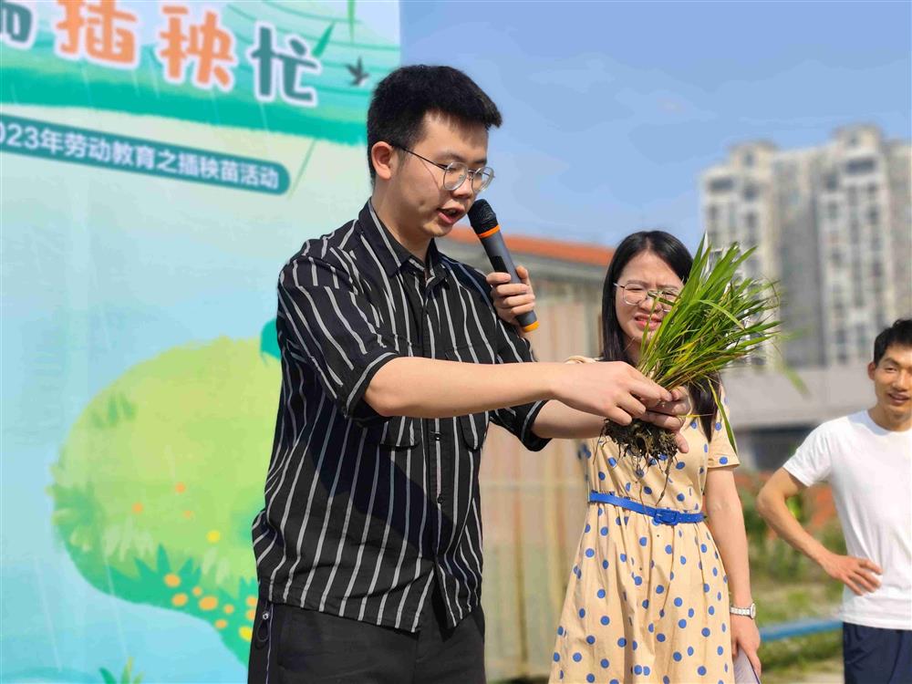 “分秧时,一定要均匀;插秧时,要用右手的食指和中指夹住秧苗的根部;掌心朝向秧苗,向下插入泥土中;秧苗间距要保持均匀……”科学老师田哲坤耐心地教授着插秧技巧。孩子们听得聚精会神,迫不及待地想要一试身手。