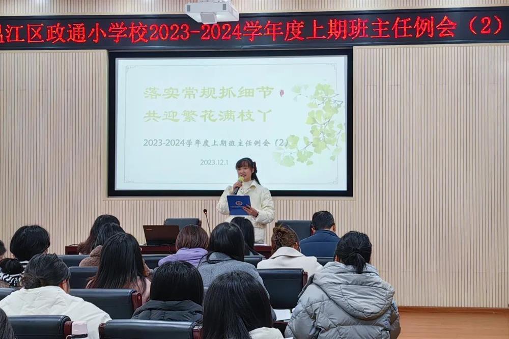 班主任工作是学校教育教学工作的灵魂,是学校德育工作的重中之重。一个班主任的管理水平对一个班集体的发展起着决定性的作用。为了加强学校班主任队伍建设,规范落实常规细节,近日,政通小学召开了以“落实常规抓细节,共迎繁花满枝头”为主题的班主任工作例会,会议由学生发展中心邹绮老师主持。