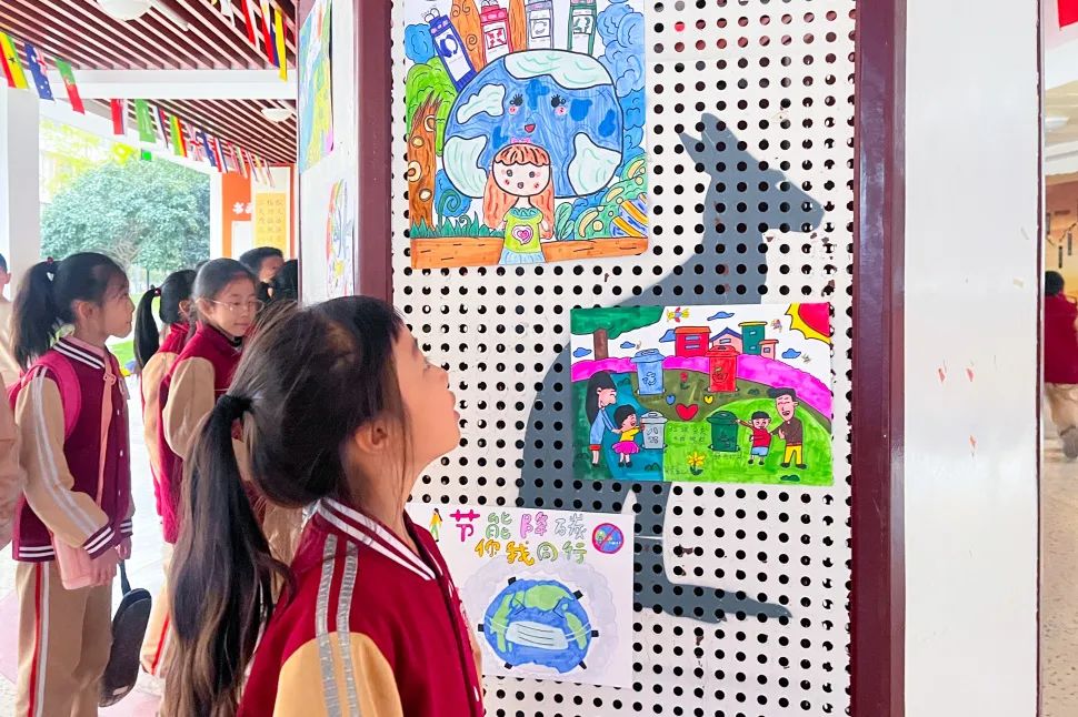垃圾分一分,环境美十分。看!主题活动结束后,学生们在美术老师的指导下,开展了绘画创作。孩子们用一幅幅生动形象、色彩鲜明的绘画作品,传递出他们眼中的垃圾分类和环保理念。